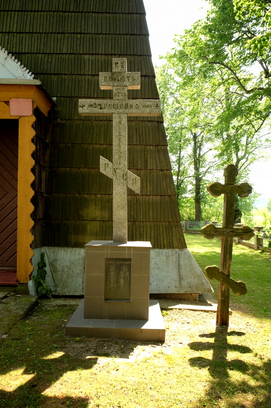 Przed wieżą cerkwi, po jej lewej stronie znajduje się stary drewniany krzyż z 1927 roku upamiętniający Misje Święte. Po prawej stronie od wejścia znajduje się betonowy krzyż postawiony w 1988 roku, który upamiętnia 1000-lecie Chrztu Rusi. Ustawiono go obok starego, drewnianego z 1937 roku postawionego w 950 rocznicę tego chrztu. Cerkiew otoczona jest ogrodzeniem z metalowych prętów wspartych na betonowych słupkach.