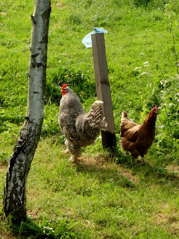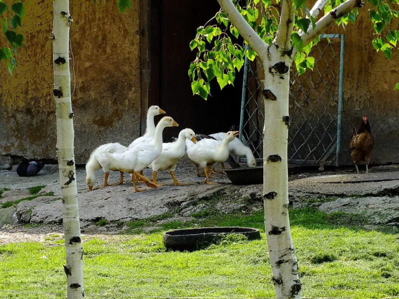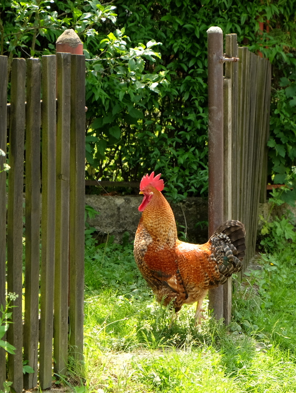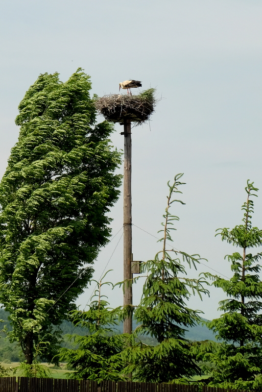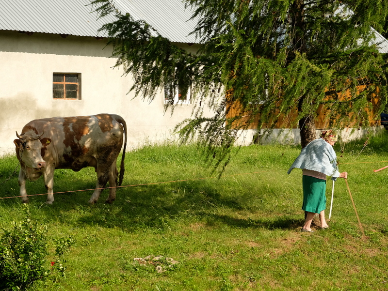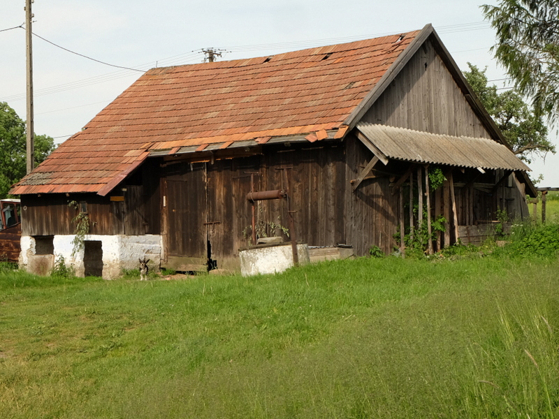 Do wsi weszliśmy od strony zachodniej, tak w okolicach jej środka. Podczas wędrówki przez wieś spotykamy dwóch facetów niosących drewniane drzwi furtki od ogrodzenia domu. To czas Zielonych Świątek a w zwyczaju miejscowych kawalerów jest zdejmowanie bram ogrodzeniowych z domów, w których mieszkają panny „na wydaniu”. Zagaduję więc do nich: