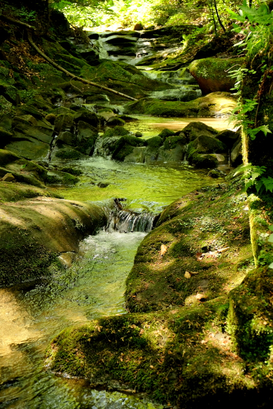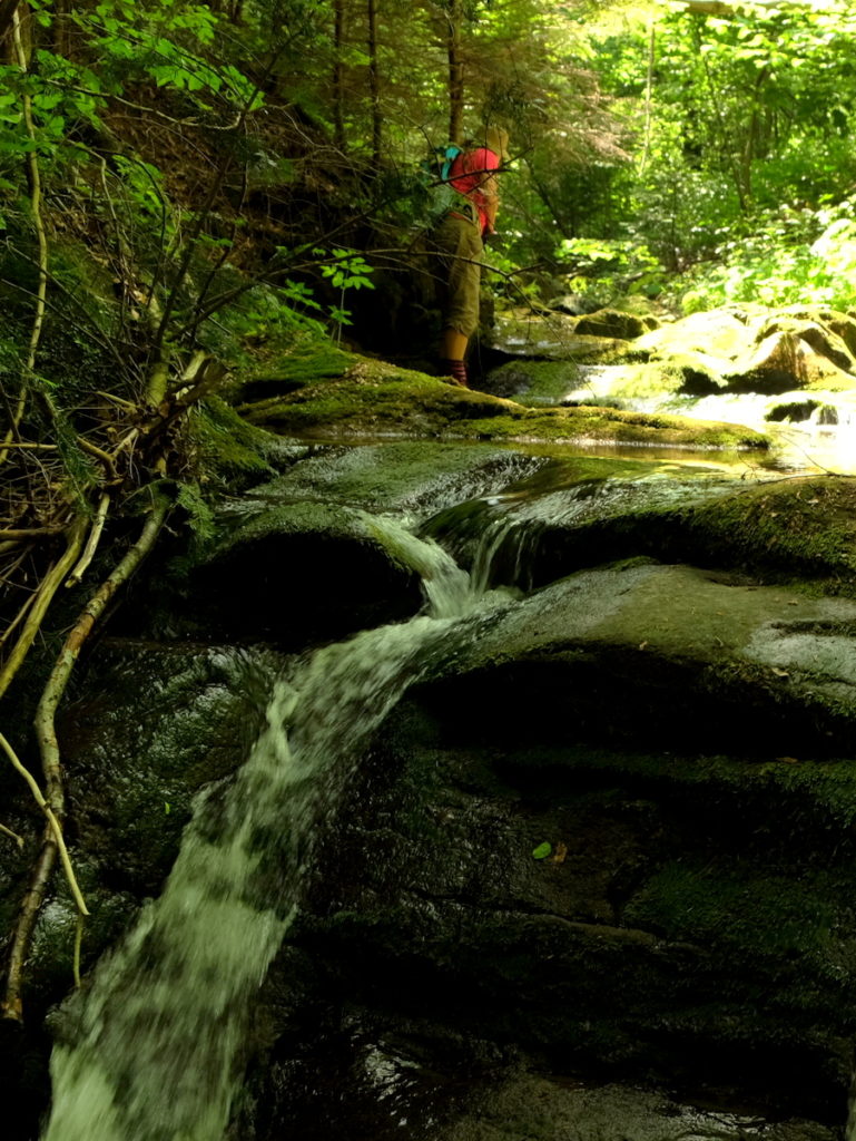 Czasem trzeba wyjść na brzeg i nim przejść kolejny odcinek. Trzeba też się zatrzymać aby zrobić zdjęcia licznym tu kaskadom. Koleżanka proponuje nawet aby kiedyś wybrać się na wędrówkę, której głównym celem byłoby takie przejście w górę jakiegoś długiego potoku. Trzeba by zaopatrzyć się tylko w odpowiednie do tego celu obuwie… Fajny pomysł!