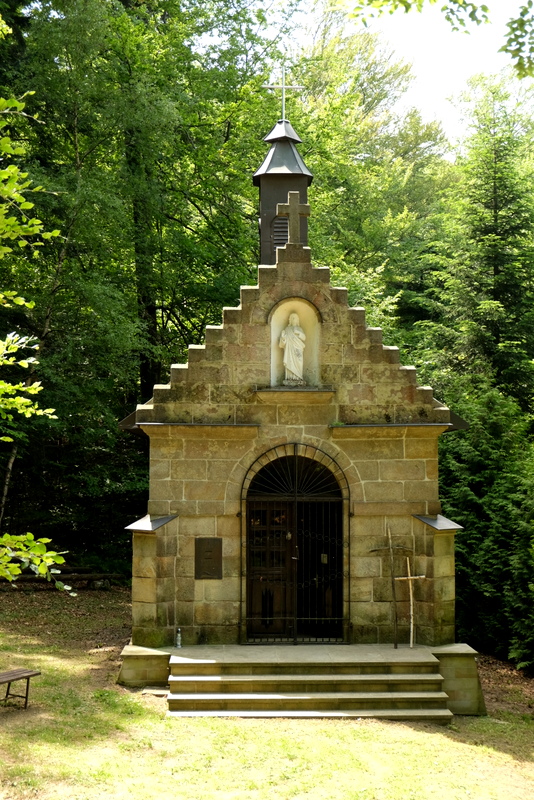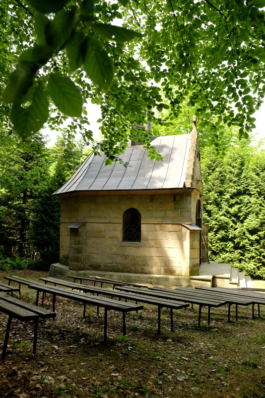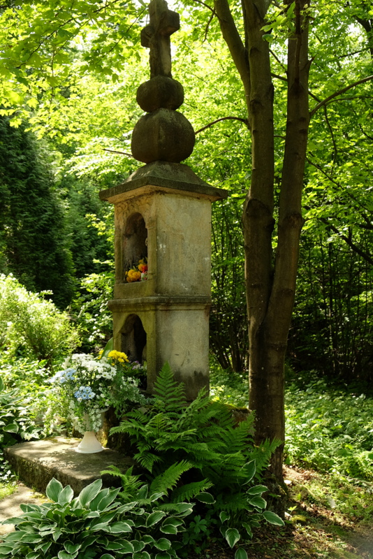 Zaczyna się tu też trasa drogi krzyżowej, która ma swój koniec przy wspomnianej już kaplicy w lesie.