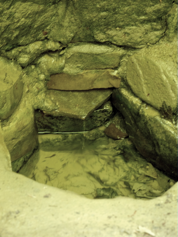Powyżej wymurowanej w 1998 roku kamiennej groty skrywającej źródełko, przy drodze, stoi wiekowa kamienna kapliczka słupowa. W jej dwóch wnękach umieszczono kolejno od góry – figurkę św. Józefa z dzieciątkiem i w drugiej, dolnej – Matki Boskiej z dzieciątkiem.