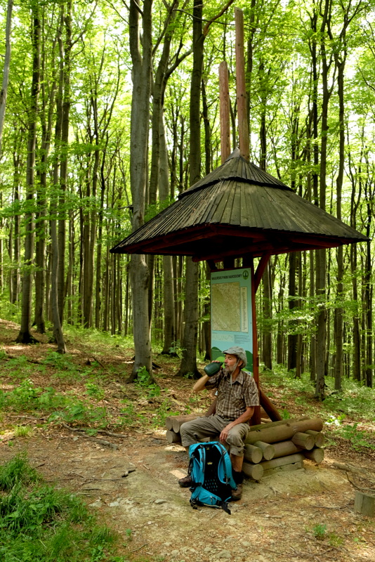 Po dłuższym pobycie na Zamkowej Górze, penetrowaniu jej okolic i poszukiwaniu śladów po zamczysku a także po krótkiej fotograficznej sesji opuszczamy to interesujące miejsce. Wracamy do zielonego szlaku i wchodząc następnie w gęsty las idziemy w stronę Folusza. Szlakiem tym trawersujemy północne stoki Smyczki podchodząc następnie na małą przełączkę między Smyczką a Czereślą. Znajduje się tam tablica informacyjna Magurskiego Parku Narodowego. Stąd wychodzimy na kulminację wzniesienia zwanego Czereślą.