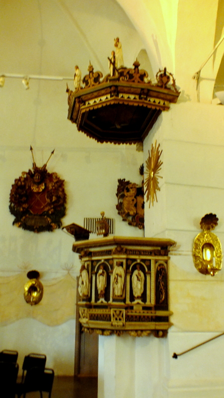 Ambonę sprowadzono z Holandii w 1626 roku i zdobią ją wizerunki apostołów i ewangelistów. W tylnej części kościoła znajdują się organy, które w ciągu wieków wielokrotnie były wymieniane przez kolejnych mistrzów tej trudnej profesji. Krucyfiks w łuku triumfalnym jest dziełem szwedzkich atrystów z końca XIV wieku.