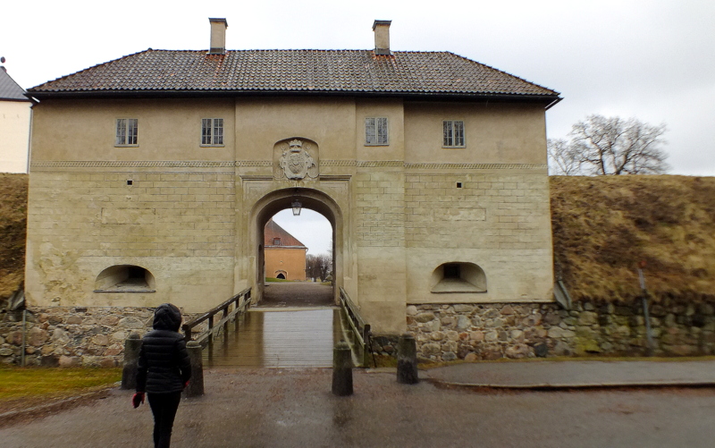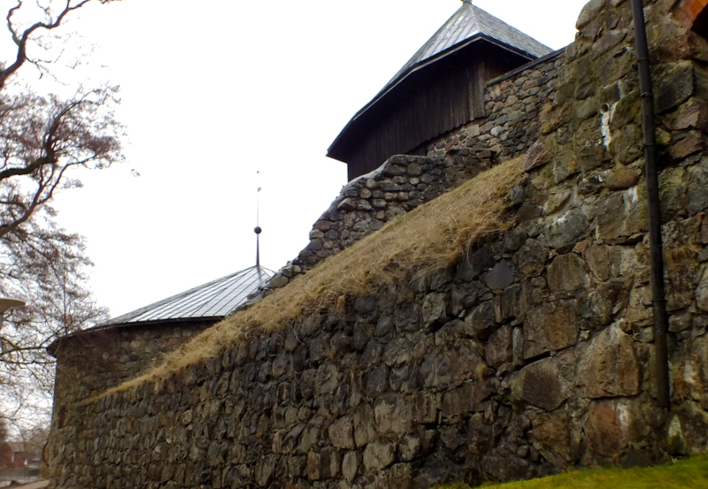 Po obejrzeniu wieży, kościoła, cmentarza i okolic wracamy w pobliże rzeki. przechodzimy mostem na drugą stronę i kierujemy się wzdłuż brzegu rzeki w stronę zamku. Po drugiej stronie rzeki widać budynek starego browaru (Gamla bryggeriet). Niedaleko już stąd do zamku. Po chwili dochodzimy do wysokich, zamkowych murów.