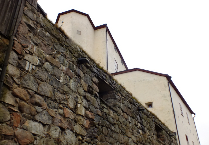 Po dojściu do zamkowych murów idziemy drogą wzdłuż rzeki mając po prawej ręce potężne, kamienne mury otaczające zamek od północno-wschodniej strony. Ciągną się one wzdłuż doliny rzecznej co tylko przydaje poczucia ich wysokości. Przy wschodniej baszcie, która była wieżą armatnią, skręcają na południe ciągnąc się do bydynku, w którym mieściła się rezydencja gubernatorów. Nyköpingshus Residenset Seminarium – bo tak się nazywała a zbudowana została w XVIII wieku na ruinach. W tamtych czasach gubernatorem był Niels Gyllenstierna.