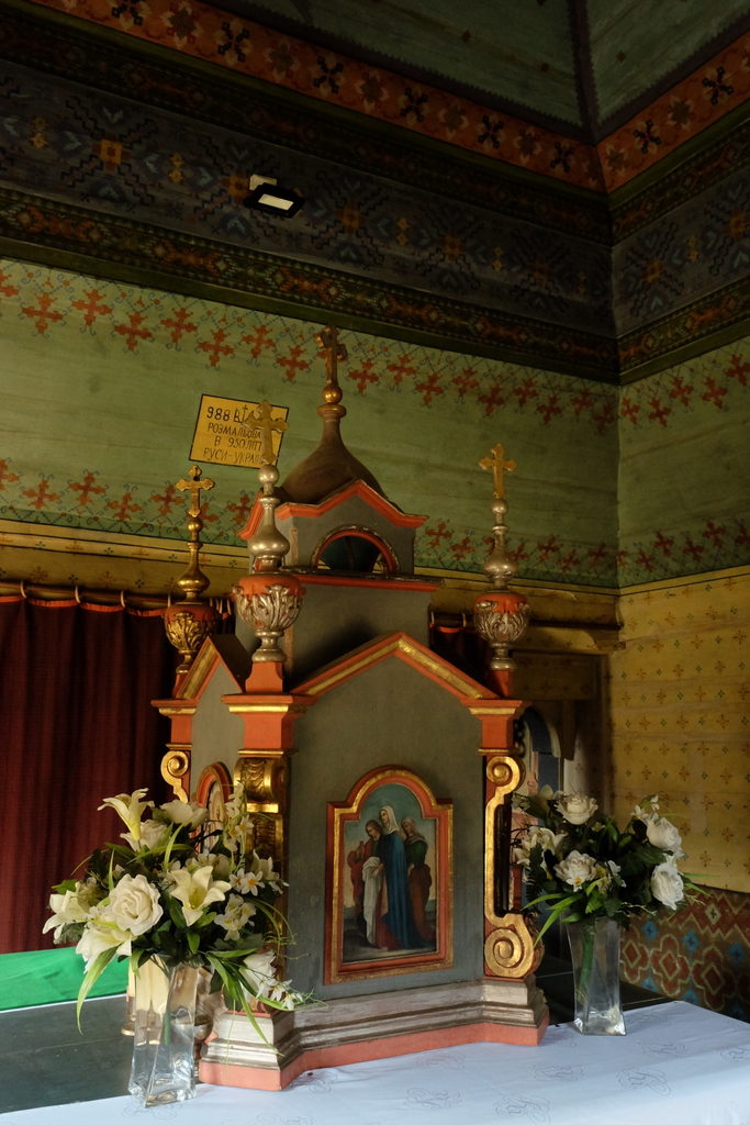 Znajduje się tu jedna z najpiękniejszych i najstarszych cerkwi na Łemkowszczyźnie. Tuż za cerkwią mieszka miła pani, która opiekuje się cerkwią i chętnie o niej opowiada. Odwiedzam więc Ją i nawet nie muszę prosić o otwarcie cerkwi gdyż sama mi to proponuje. Jestem tu już czwarty raz i za każdym byłem wewnątrz cerkwi. A jest tu w niej pięknie!