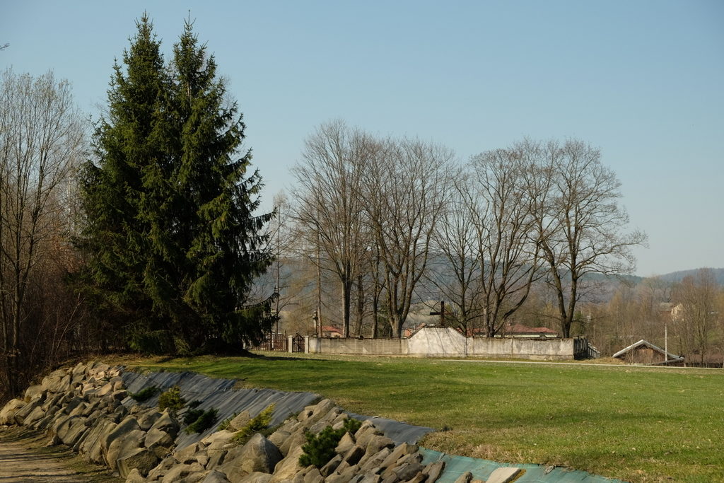 Z terenu cerkwi udaję się drogą w kierunku górnej części wsi. Mijam niewielką stadninę koni, przechodzę przez mostek nad Siarką, kilka zabudowań i dochodzę do cmentarzy. Po prawej stronie drogi , na niewielkim wzniesieniu znajduje się nowszy cmentarz z grobami katolickimi.