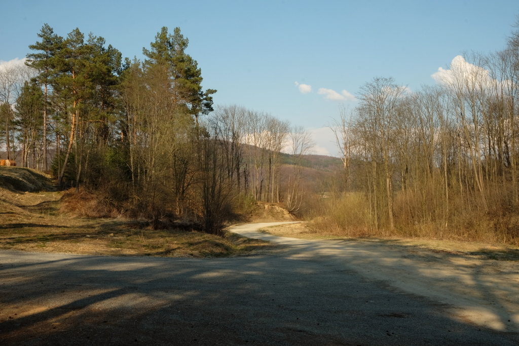 Serpentynkami dochodzę do dużego placu będącego miejscem składowania drewna. Od tego miejsca już łagodnie drogą szutrową podążam w stronę Owczar Dolnych.