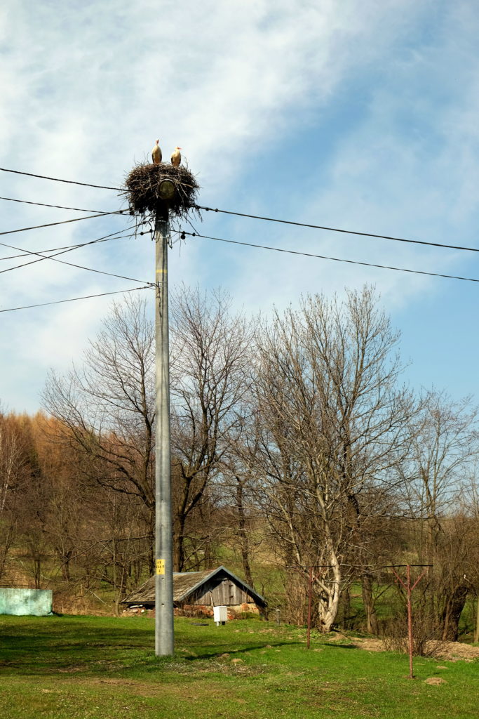 Dojeżdżam do drogi Gorlice – Nowy Żmigród, gdzie znajduje się skromna, murowana, pobielona wapnem, przydrożna kapliczka z mało interesującym wnętrzem. Kawałek dalej na wysokim słupie gniazdo z bocianią rodziną. Kilkadziesiąt metrów dalej skręcam na południe w gruntową drogę i nią dojeżdżam do cmentarza wiejskiego.