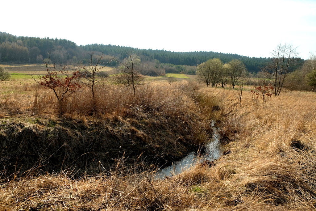 Wiekowa chyża i meander potoku Bednarka w Bednarce (wsi).
