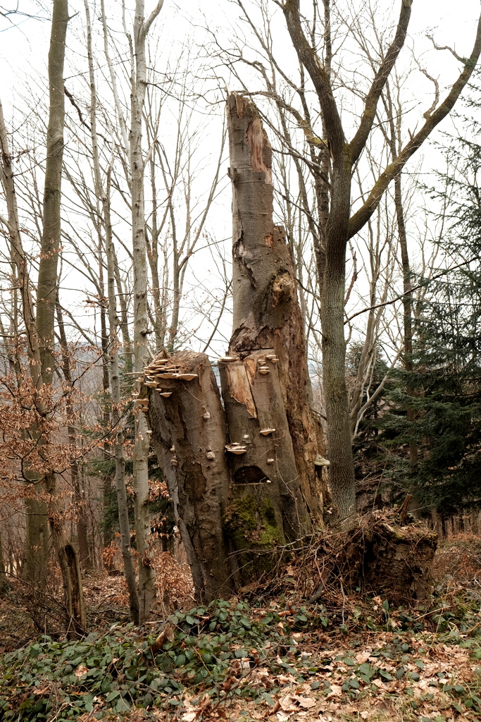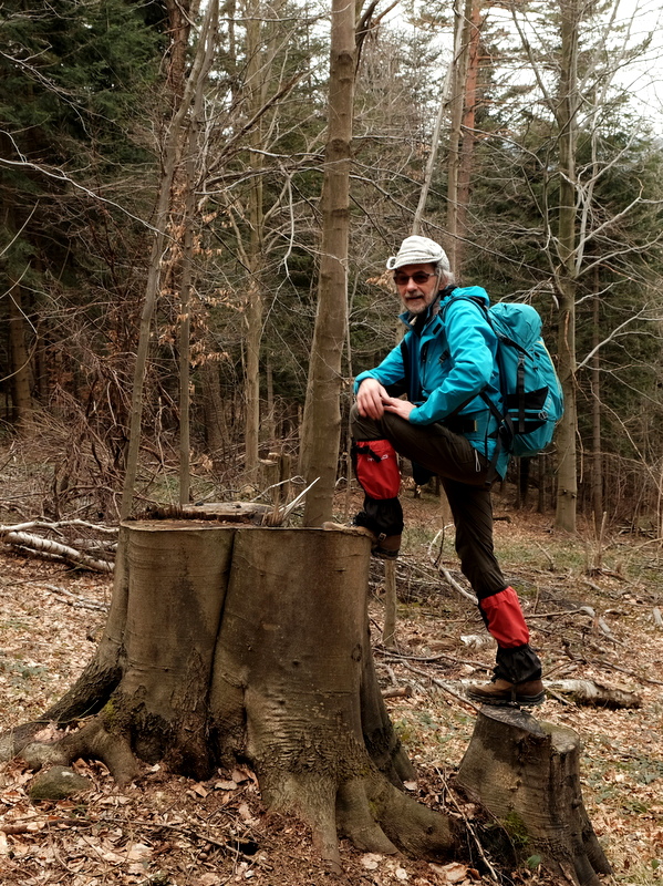 Podchodzimy jeszcze kilkaset metrów wyżej i tam przysiadamy na kłodach drzewa aby odpocząć i coś zjeść. Także aby naradzić się co dalej robimy bo czasu już niewiele nam zostało.