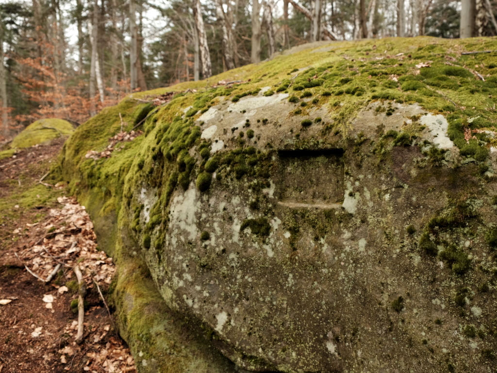W niewielkiej odległości od grupy skał z napisami można natknąć się na kilka innych, ale mniejszych skałek. Jedna z takich mniejszych grupek tworzy kilka stopni schodków, u dołu których leży większy, porośnięty mchem owalny kamień.
