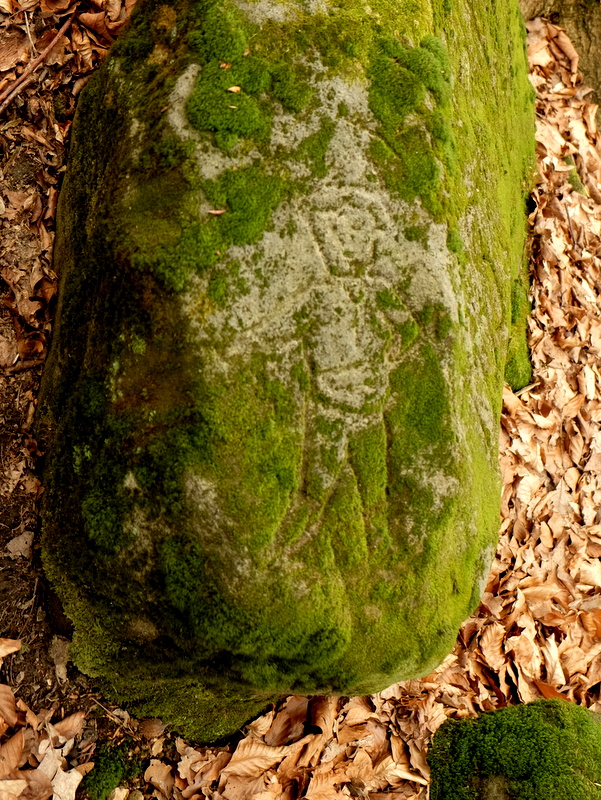 Na ukośnej, bocznej ściance tego samego kamienia wyryty jest wizerunek postaci człowieka. Jest on stosunkowo mały i na dodatek częściowo porośnięty mchem więc trudno go od razu dostrzec.