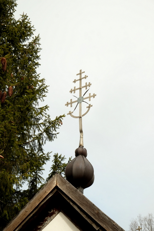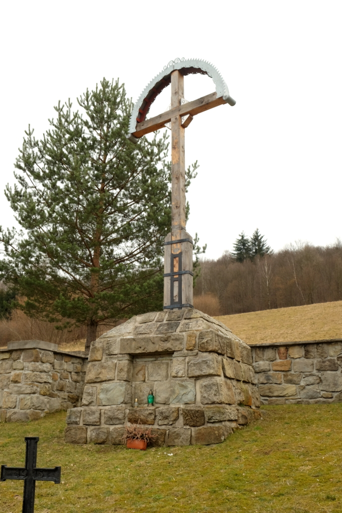 Obok niej stoi wystawiony w 2000 rok drewniany krzyż – zapewne millenijny. W drewnianej podstawie tego krzyża wyżłobione sa pionowe napisy – z lewej w j. łemkowskim a z prawej w j. polskim. Ich znaczenie jest takie samo (“zmiłuj się nad nami”).