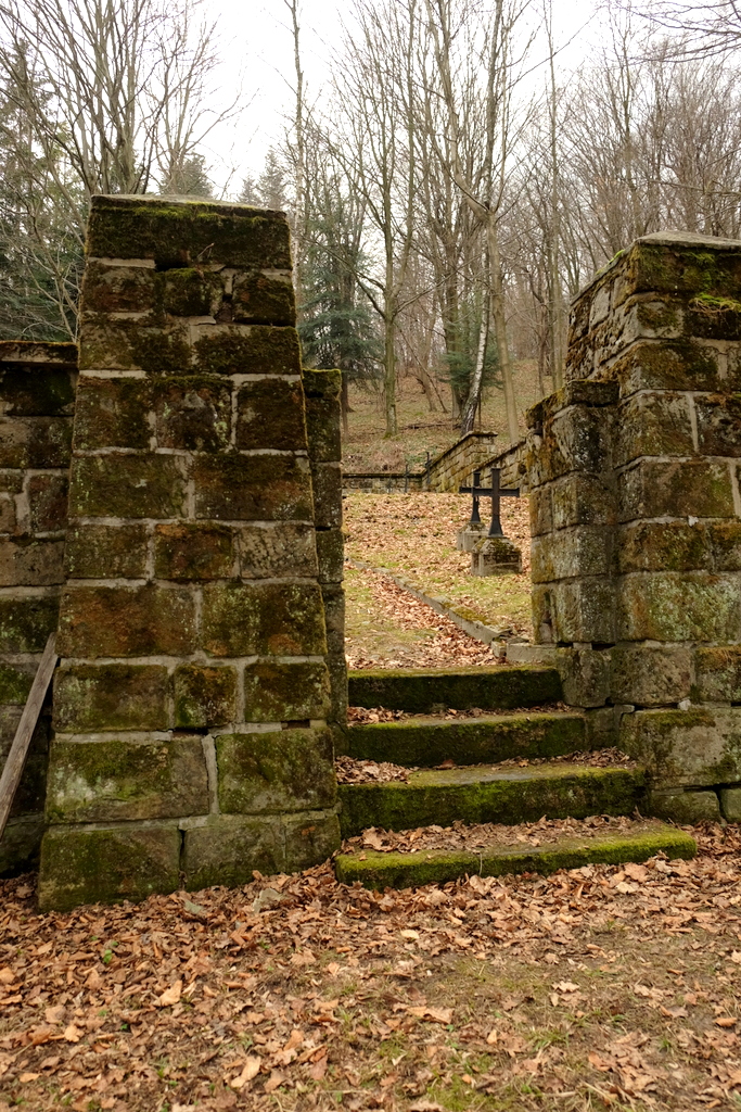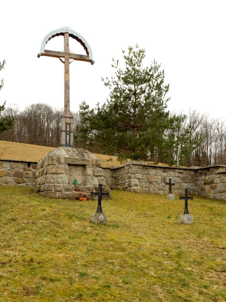 Po przyjeździe do Ropicy Górnej zostawiliśmy samochód na parkingu między dawną cerkwią a cmentarzem. Wędrówkę zaczęliśmy od podejścia polną droga biegnącą obok cmentarza – tego nowego – bo jest tu też stary cmentarz łemkowski, który usytuowany jest za strumieniem, nieco na północ od cerkwi.