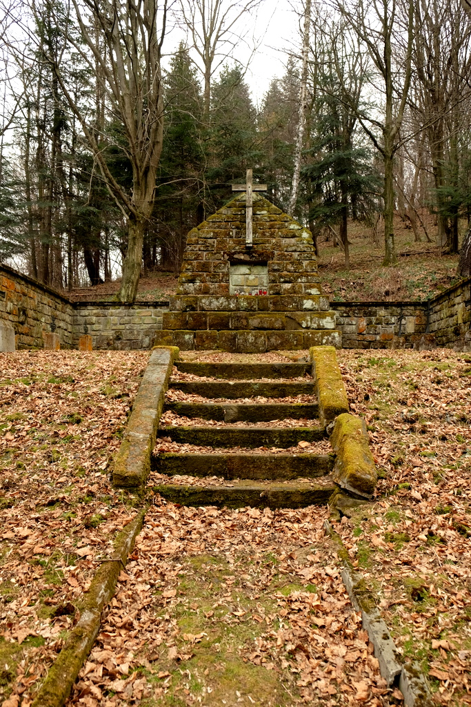 Przeglądając mapę nie widzimy już na niej zaznaczonych wyżej żadnych wodospadów. Kaskad z pewnością będzie jeszcze wiele ale pora zrobiła się już późna więc czas pomyśleć o powrocie. Wcześniej mieliśmy zamiar aby po zwiedzeniu wodospadów wyjść na grzbiet gdzieś pomiędzy Dziamerą a Zawierszą, do odcinka szlaku narciarskiego “Śnieżne Trasy Przez Lasy”. Potem przez Zawierszę oraz Kornutę zejść do Małastowa a stamtąd do Ropicy. Jak się okazało zbyt wiele czasu poświęciliśmy na szukanie kamieni na górze Piwane, na przejście przez Pstrążne oraz w poszukiwaniu wodospadów. Skutkiem tego musimy zrezygnować z przejścia grzbietem Zawierszy i Kornuty bo za mało zostało na to czasu. Pozostaje więc wrócić do Dragaszowa tą samą drogą. W drodze do Ropicy wstąpimy jeszcze na dwa zabytkowe cmentarze z I wojny światowej.