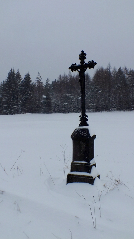 Niedaleko od granicy rezerwatu znajdują się płytkie zbiorniki wodne utworzone tu w 2011 roku po pożarach torfowisk. Najwięcej z nich miało tu miejsce w latach 90-tych XX wieku. Teraz oczywiście ich nie widać bo są przysypane śniegiem. Przy drodze obok stoi najlepiej w okolicy zachowany przydrożny krzyż z 1901 roku. To w tej okolicy przebiegała granica między Rudawką Jaśliską a Jasielem.