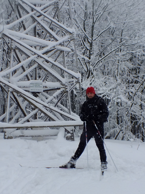 Cóż – dziś niebo kompletnie zasnute ołowianymi chmurami, czasem sypie śnieg więc i widoczność kiepska. Ale i tak warto zerknąć na słowacką stronę oraz na Kamień (857 m n.p.m._