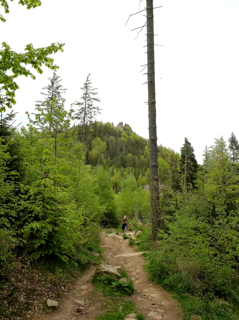 Dalszą wędrówkę kontynuujemy wychodząc spod schroniska i kierując się na północ, wchodząc tym samym na oznakowaną ścieżkę. Po krótkim, niezbyt stromym podejściu dochodzimy do Husyckich Skał.