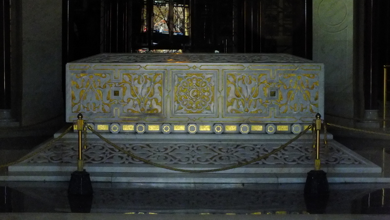 Nad nim wisi ogromny, imponujący kryształowy żyrandol. W sąsiednich pomieszczeniach mieści się niewielkie muzeum, w którym znajdują się nagrobne płyty współpracowników prezydenta. Wewnątrz mauzoleum rzuca się w oczy przepych kapiący złotem.