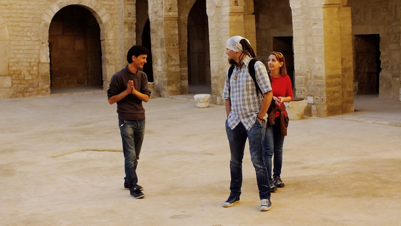 Po przyjeździe tamże spotkaliśmy się z chłopakiem z couchsurfingu. Couchsurfing, w skrócie „CS” – to portal dla ludzi podróżujących i otwartych na świat. Uczestniczący w programie CS to pozytywnie nakręceni ludzie z całego świata, którzy pomagają sobie wzajemnie w poznawaniu innych krajów, ich kultury, obyczajów itp. Często proponują sobie noclegi, odbierają z lotniska a oprowadzając przyjezdnych po swoim mieście, pomagają poznać im kulturę i zwyczaje panujące w odwiedzanym kraju, zasmakować chociaż w części codziennego życia i poznać go z punktu widzenia normalnego mieszkańca a nie gościa hotelowego. Naszym przewodnikiem był Sahbi, z którym spotkaliśmy się z nim w centrum Sousse przy biurze informacji turystycznej.