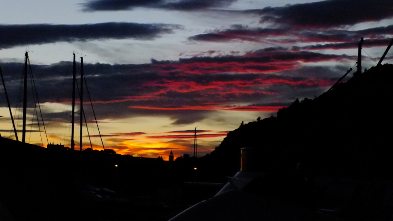 Po zwiedzeniu tego urokliwego kurortu zeszliśmy do portu, gdzie czekaliśmy na zachód słońca, które od czasu do czasu chowało się za małymi chmurkami a jego promienie odbijały się w wodzie.