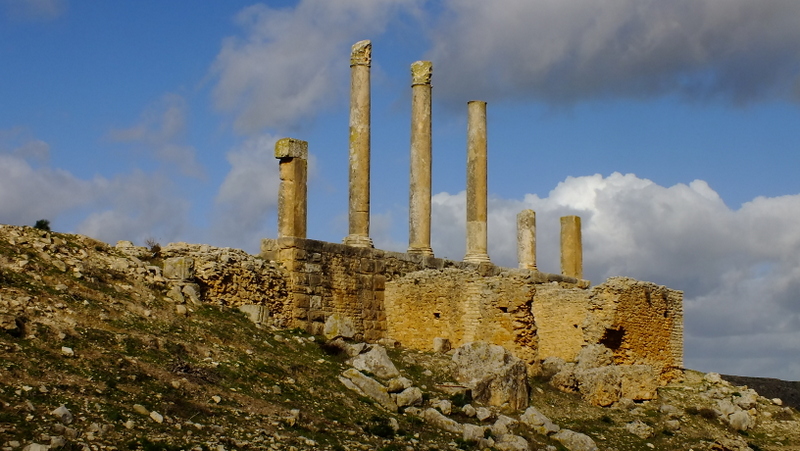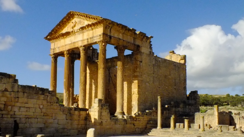 Kapitol – świątynia trójcy kapitolińskiej (Jowisza, Junony i Minerwy) zbudowana z wapienia w 166 lub 167 roku naszej ery. Najlepiej zachowana świątynia kapitolińska w całej północnej Afryce. Składa się z 6 żłobkowanych ośmiometrowych kolumn korynckich, podtrzymujących front z płaskorzeźbą Antonina Piusa. Wrota z rzeźbionym nadprożem, prowadzą do wnętrza sanktuarium.