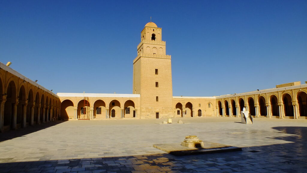 – został wzniesiony w 670 r. a przez dynastię Aghlabidów. W 836 r. został rozbudowany i w takiej formie przetrwał do dnia dzisiejszego. Jest to jeden z najstarszych meczetów na świecie, w całym Maghrabie jest uważany za najbardziej imponujący budynek. Jest to budowla, która ma ogromne znaczenie religijne, historyczne jak i architektoniczne.