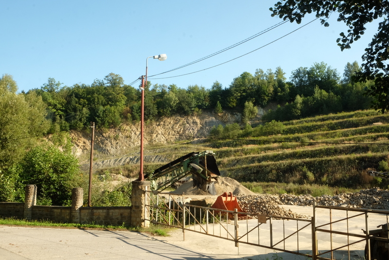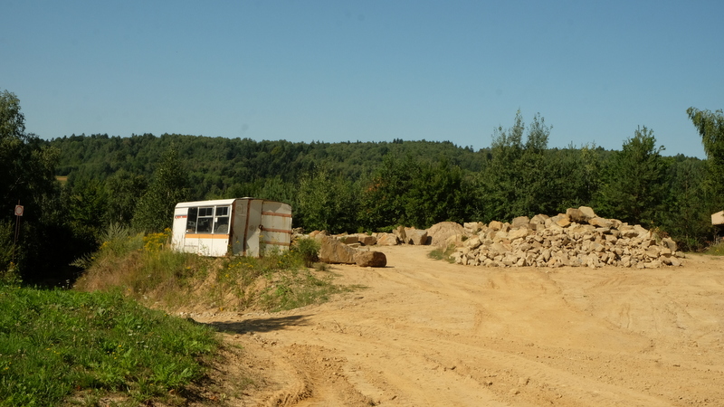 Samochód zaparkowaliśmy na przykościelnym parkingu skąd udaliśmy się w stronę górującego od północnego wschodu nad Wolą Komborską masywu Połomu. Zaraz za kościołem – ale po prawej stronie drogi znajduje się czynny kamieniołom.