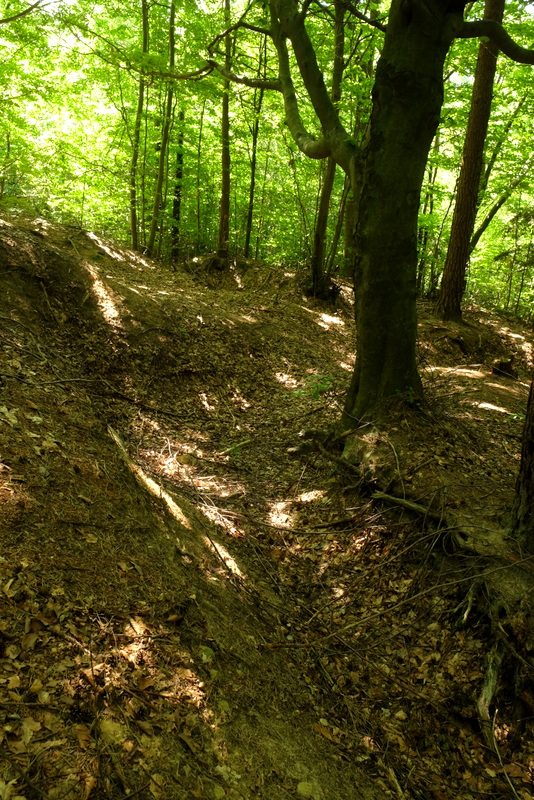 Po obejrzeniu wszystkich tych obiektów na górze Połom oraz po spenetrowaniu dawnego kamieniołomu odnajdujemy leśną dróżkę prowadzącą na południe.
