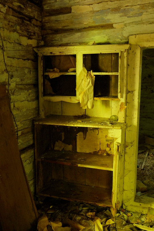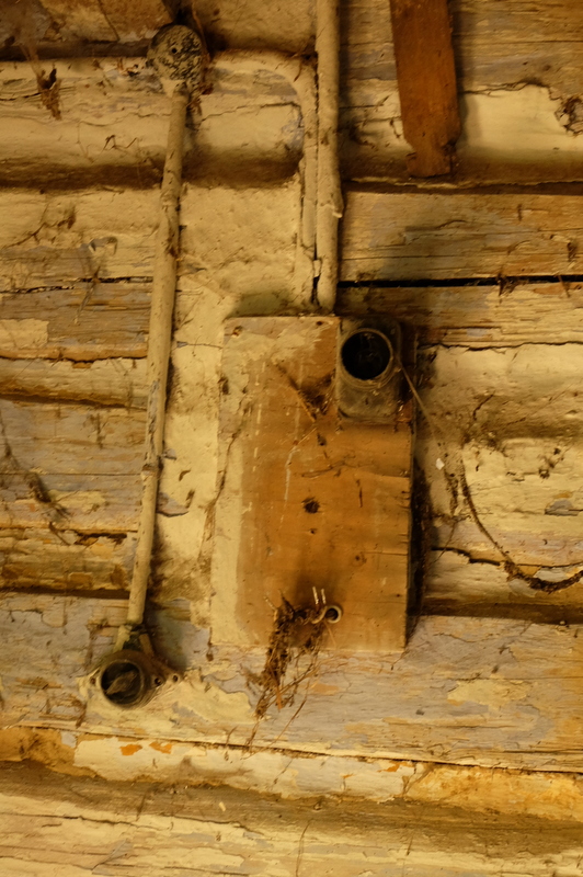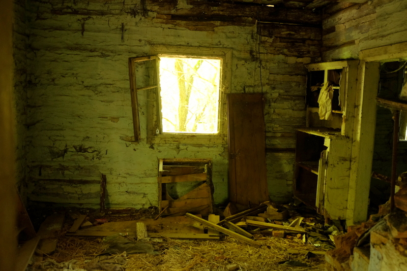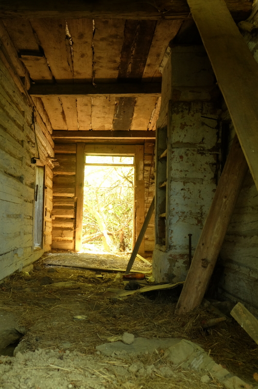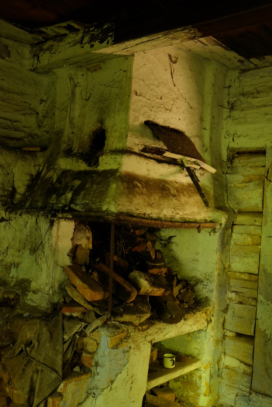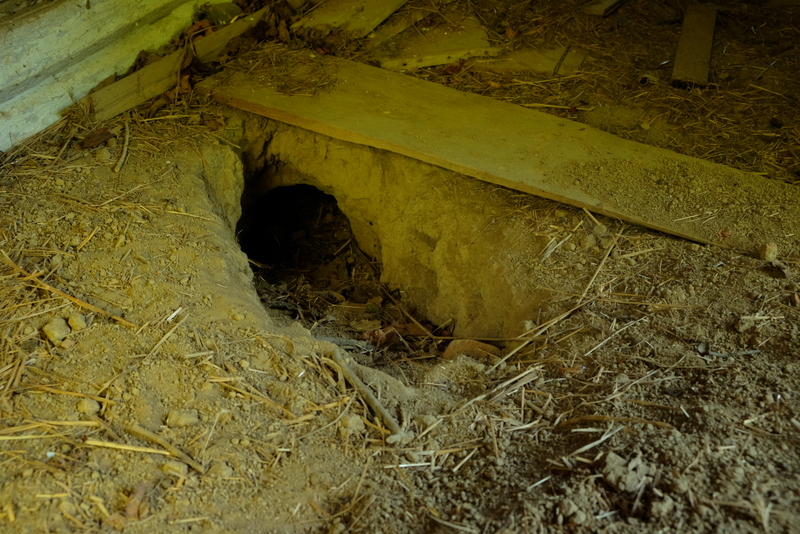 W podłodze znajdują się lisie nory świadczące o tym, że teraz to lisy tutaj zamieszkują.