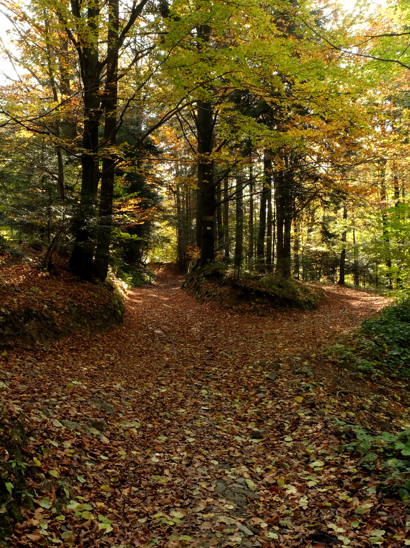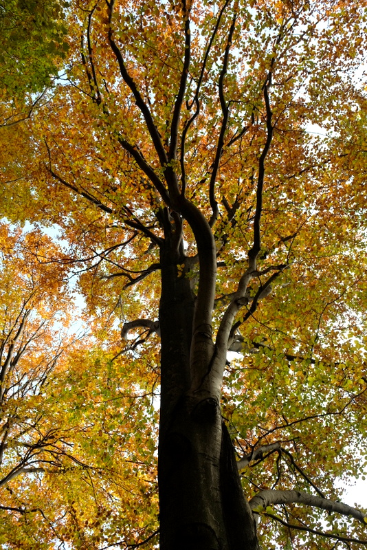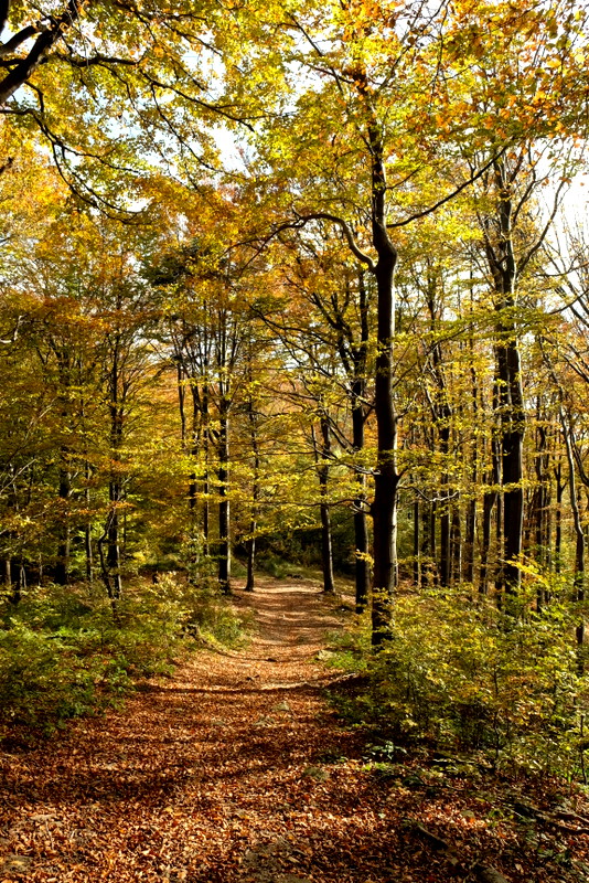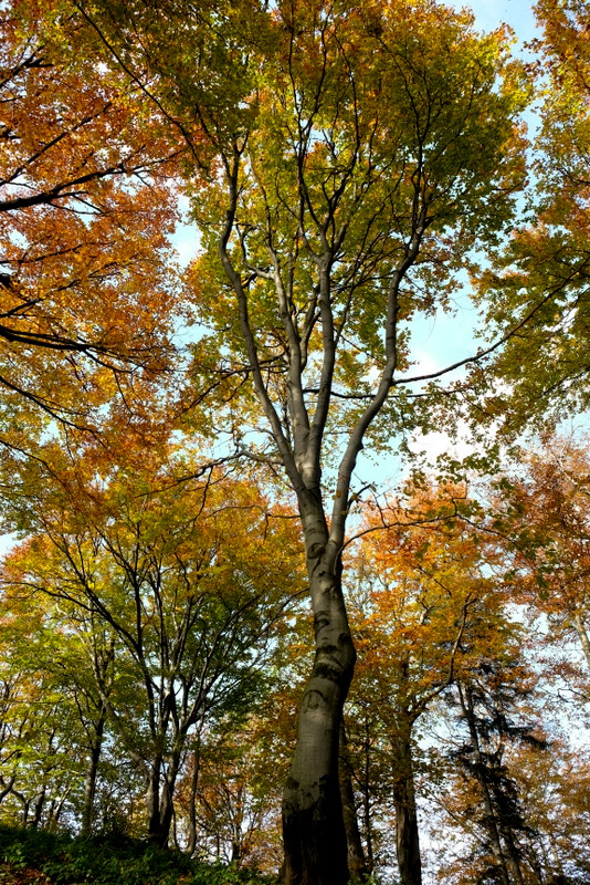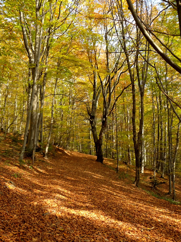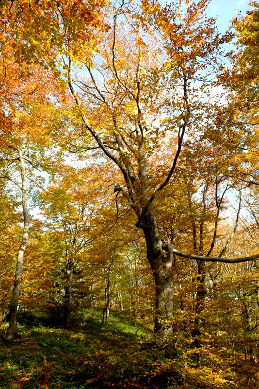 Słoneczna październikowa pogoda tylko podkreśla piękno tych bukowych lasów. Mieniące się wszystkimi odcieniami brązu, żółci i pomarańczy kontrastują ze światłocieniami rzucanymi na szare bukowe pnie ożywiając je wyraźnie. Gdzieniegdzie pojawiają się zielone plamy traw i innych roślin runa leśnego, kontrastujące z rudo-brązowymi liśćmi wyścielającymi leśne ścieżki i drogi. Jeśli komuś brakuje kolorów wystarczy skierować wzrok w górę aby dostrzec rudo-żółte i złociste liście na tle błękitnego nieba czy też białych obłoków. Dla odmiany na północnych i wschodnich stokach bukowe liście są jeszcze zielone co tym bardziej ubarwia te urokliwe lasy.
