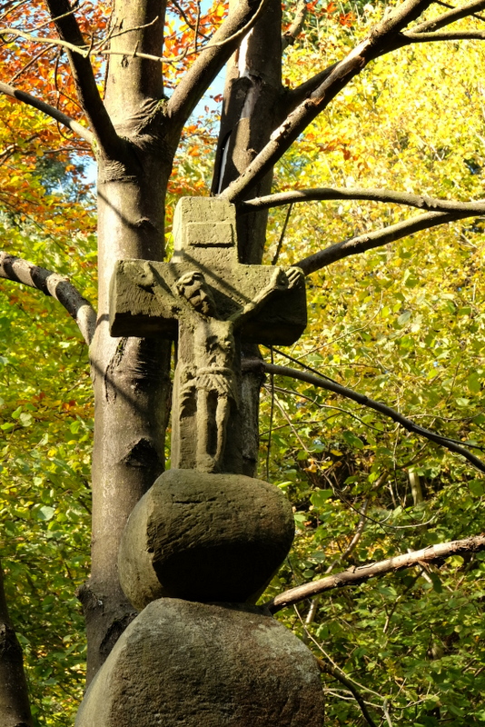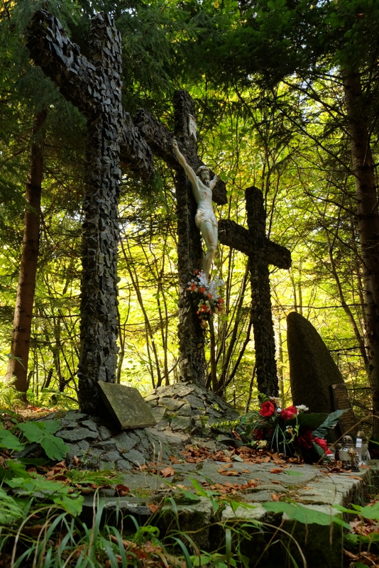 W okolicy parkingu zaczyna się też Droga Krzyżowa biegnąca równolegle do szlaku turystycznego ale po drugiej stronie Szczawy i stanowi alternatywą trasę dla owego szlaku. Wyżej (bodajże przy IX kapliczce) łączy się ta droga ze szlakiem turystycznym.