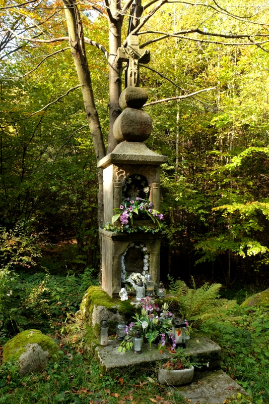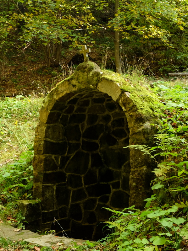 Poniżej, przy odchodzącej w bok dróżce, znajduje się źródełko uważane za cudowne.
