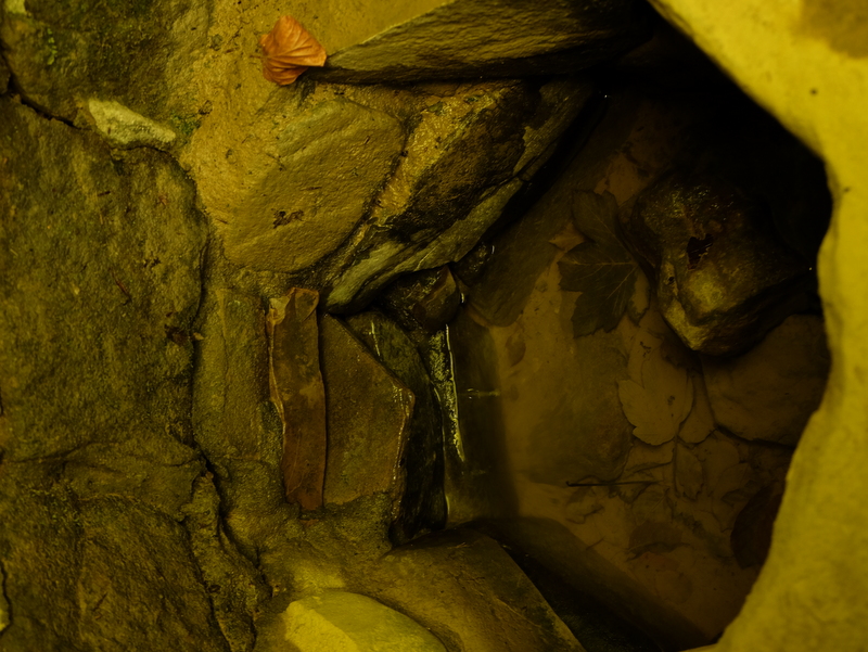 Idąc dalej droga zaczyna się wznosić przyjmując formę niewielkiego wąwozu. W miejscu, gdzie słychać szum spadającej wody opuszczam drogę schodząc stromo w dół aby dostać się do koryta, którym spływa potok. Zaczynają się tu kaskady więc odtąd będę szedł wzdłuż potoku przeskakując po kamieniach z jednego brzegu na drugi. Będę tak szedł w górę Szczawy aby dojść do kilku niewielkich wodospadzików, robiąc przy tym zdjęcia. Nie pierwszy raz idę tędy – zarówno z biegiem Szczawy jak i do miejsca, gdzie umiejscowiona jest kaplica oraz cudowne źródełko. Pisałem o tym już wcześniej w tym artykule więc można sobie opisy tych miejsc porównać.