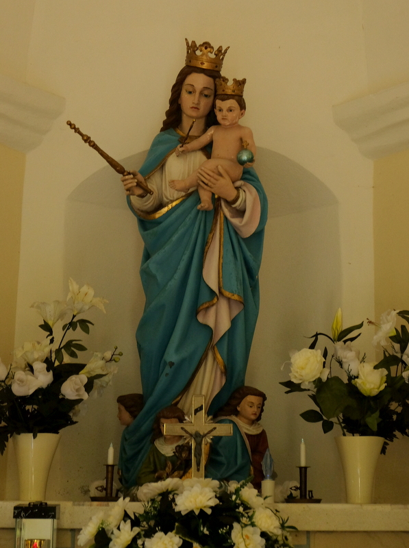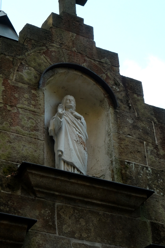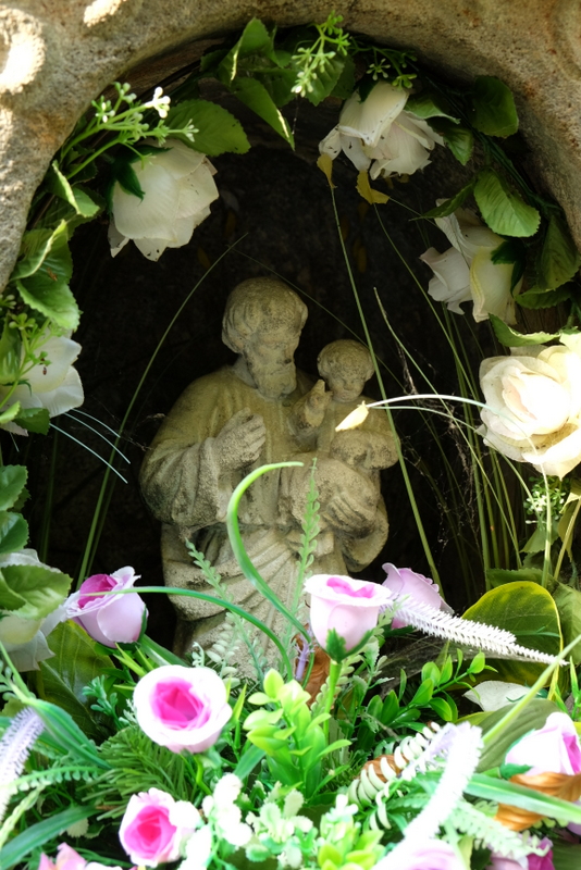 Poniżej kaplicy od ponad stu lat stoi kamienna dwukondygnacyjna kapliczka słupowa. Jest ona nakryta kamiennym daszkiem, na którym umieszczone dwie kamienne, kuliste banie, zwieńczone kamiennym krzyżykiem z ciekawą płaskorzeźbą ukrzyżowanego Chrystusa. W dolnej wnęce umieszczono figurę Matki Boskiej z dzieciątkiem a, w górnej – św. Józefa również z dzieciątkiem.