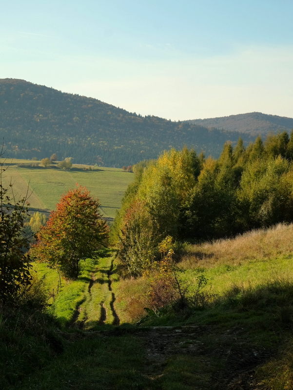 Z polnej drogi do Brzezowej, którą właśnie schodzę także mam piękne widoki. Idę więc niespiesznie zadowolony i zrelaksowany całą tą dzisiejszą wędrówką.