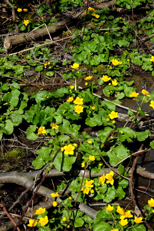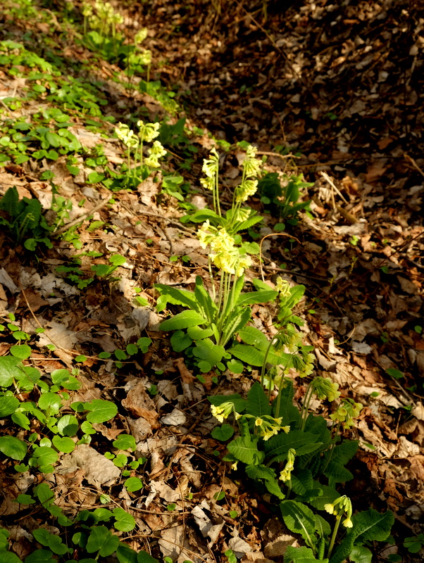 Z kulminacji Przypasowisk schodzę w dość wyraźną przełączkę porosnięta gęstą roślinnością krzaczastą, z której wyłaniają się pojedyncze, wysokie drzewa. W runie pojawiają się pierwsze wiosenne kwiaty i inne, niekwitnące jeszcze o tej porze roku rośliny.