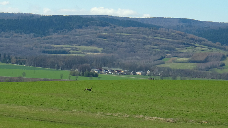 Podchodząc wyżej mijam krzaczaste zarośla, z których wybiega spłoszona sarna.
