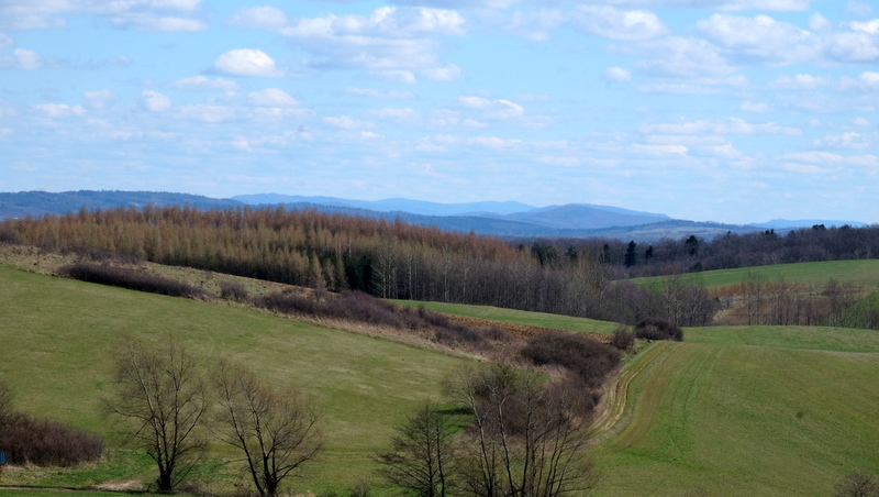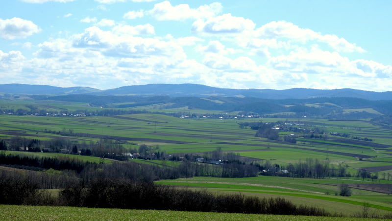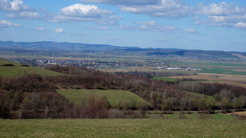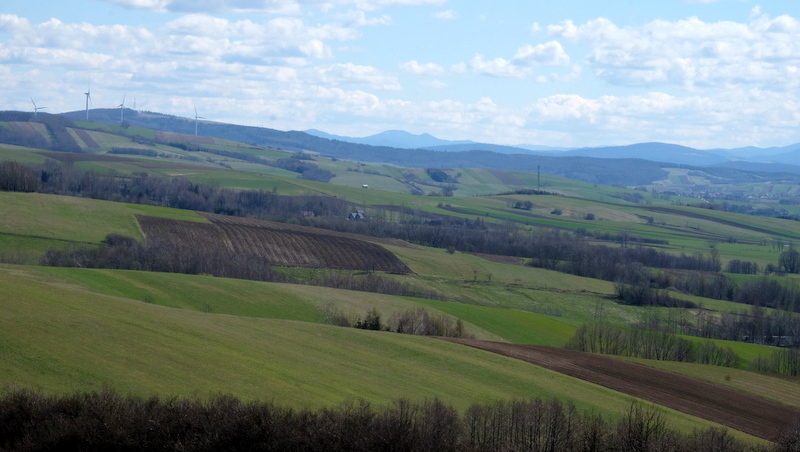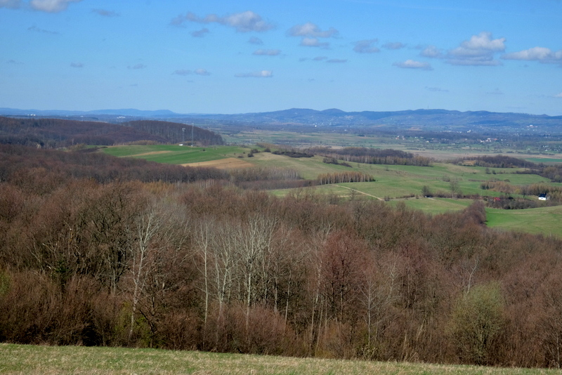 Bliżej widać Pogórze Bukowskie a w oddali na wschodzie nawet Bieszczady.