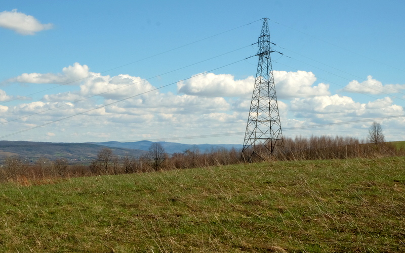 Z przełeczy tej podchodzę na szczyt kolejnej widokowej góry o nazwie znanej wszystkim miłośnikom bieszczadzkich połonin – Caryńska. Ta jednak jest aż o około 850 metrów niższa bo osiągająca wysokość zaledwie 451 m n.p.m. Na wschód od jej szczytu przebiega linia wysokiego napięcia. Osobiście lubię w krajobrazie linie wysokiego napięcia bo bywają często ciekawymi obiektami do fotografowania.