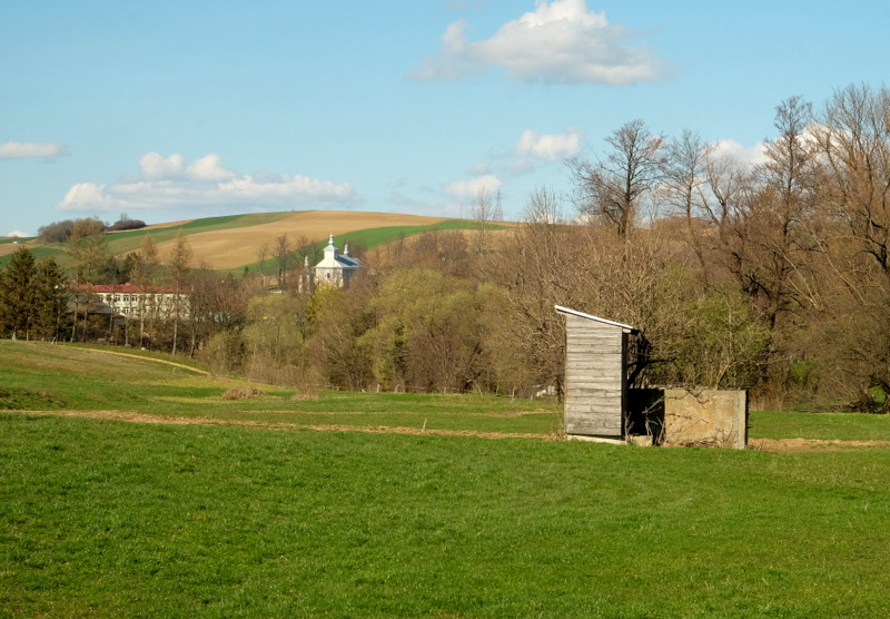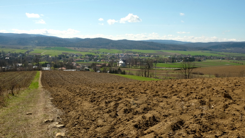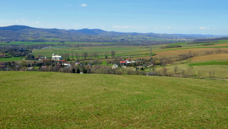 Doskonale widać położoną w dolinie Czemyślanki wieś Odrzechową, z rzucającą się w oczy sylwetką dawnej cerkwi.