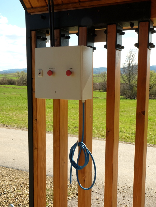 Niedaleko, bo w odległości około 1,5 km, w przysiółku Odrzechowa – Osiedle mijam trzeci już MOR na mojej dzisiejszej trasie. W każdym z nich jest podobnie, czysto, schludnie, kompresorek, oświetlenie – i wszystko to działa. Brawo dla gminy Zarszyn!