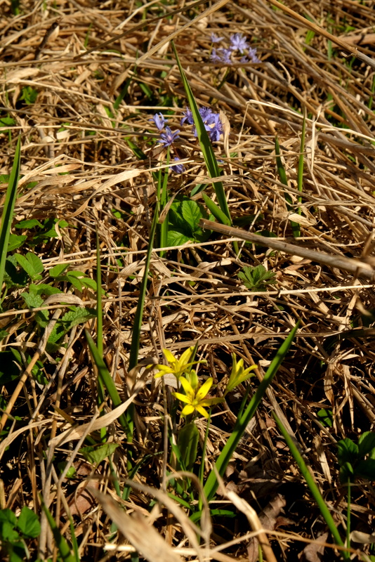 Z suchej jeszcze, a w innych miejscach z zielonej już trawy, wystawiają swoje, żółte czy niebiesko-fioletowe łebki w stronę słońca wczesnowiesenne kwiaty.