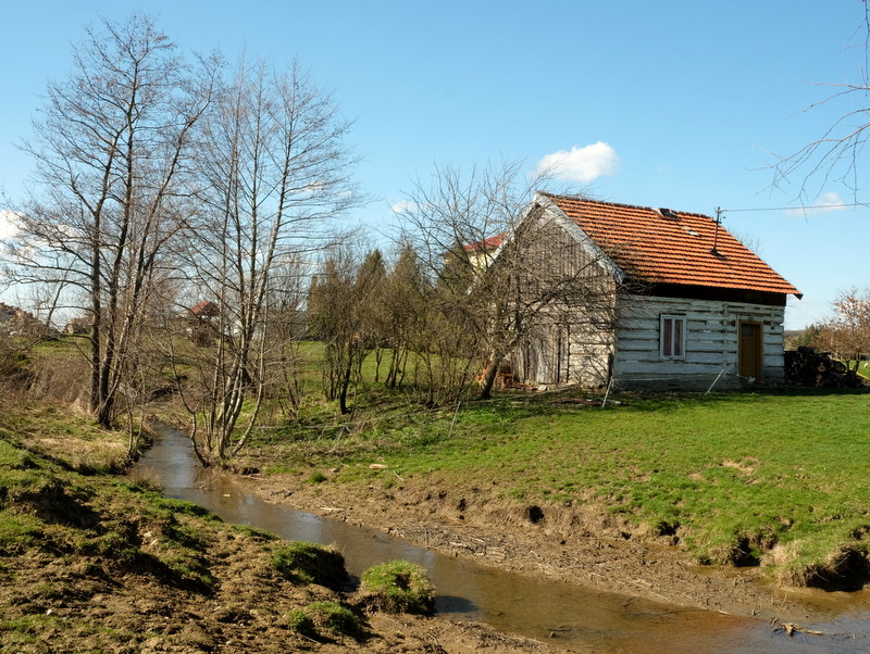 W taki sposób idę w stronę Odrzechowej wchodzac do tej wioski przy starym mostku.