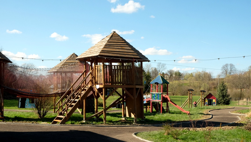 Blisko centrum Odrzechowej przy wylocie ulicy Jasnej znajduje się „Bajkowa Kraina Pogranicza” gdzie najmłodsi oraz ich opiekunowie mogą wspólnie spędzić czas w otoczeniu postaci z bajek i legend. Specjalnie podszedłem tam aby naocznie przekonać się jak ona wygląda. Być może przyjadę tu kiedyś z moim wnuczkiem? Jest tu bardzo kolorowo, kilka domków, krętych uliczek, huśtawki, zjeżdżalnie, ścianka wspinaczkowa i inne tego typu atrakcje dla dzieci, wszystko dekorowane postaciami z różnych bajek. Całość położona jest w malowniczej dolince nad rzeczką i zajmuje powierzchnię 0,5 ha. Obecnie jednak, po sezonie zimowym, nie przedstawia się ciekawie. Widać przygotowania do remontu, po którym – mam nadzieję – będzie spełniać swoją rolę.