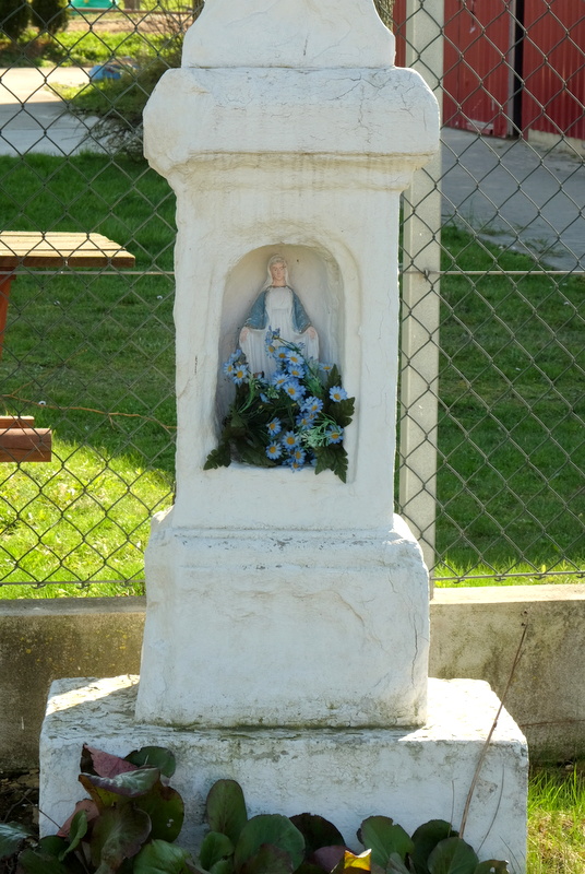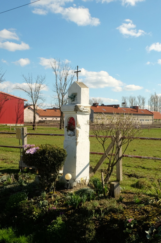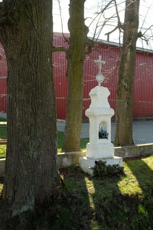 W poblizu spichlerza z stoi kapliczka z figurką Matki Boskiej we wnęce. Niestety nie można już odczytać ani daty, ani tym bardziej inskrypcji.