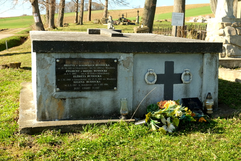Nieopodal wejścia znajduje się okazały grobowiec rodziny Russockich.