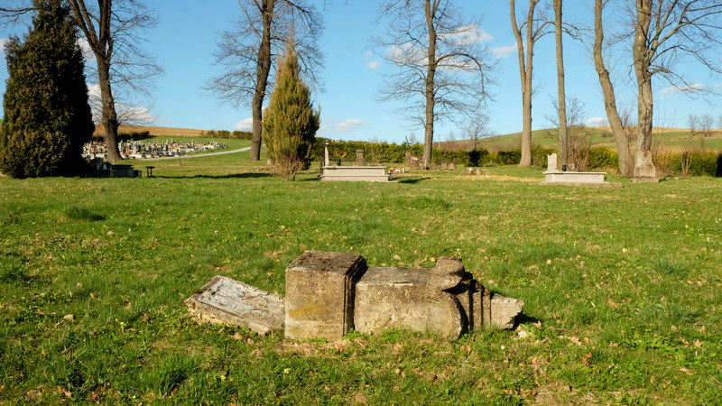 Po wschodniej stronie dawnej cerkwi, oddzielony od niej kamiennym murkiem i drogą z parkingiem znajduje się duży cmentarz parafialny. Obecnie podzielony on jest jakby na dwie części. Południową – krórą zajmują w większości zniszczone już, stare nagrobki greckokatolickie. Północną, na której znajdują się wspóczesne groby katolickie. Obie części dzieli na połowy droga dojściowa.