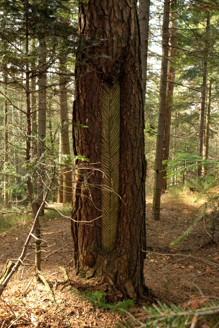Obok terenu Zaginionych Skałek znajduje się trzeci przystanek “Drzewa Żywicowane”. Spotykamy tu kilka starszych, wysokich sosen, na pniach których znajdują się okorowane miejsca, a na nich zabliźnione, skośne nacięcia. Kiedyś w taki sposób pozyskiwano z drzew żywicę. Polegało to na zdjęciu kawałka kory, nacięciu ostrym nożem skośnych rowków w formie jodełki zbiegających się do pionowej rysy i umieszczeniu niżej naczynia na spływającą żywicę. W obecnych czasach tej metody już się nie stosuje. Pamiętam, gdy byłem nastolatkiem często tak ponacinane sosny widywałem w lasach.